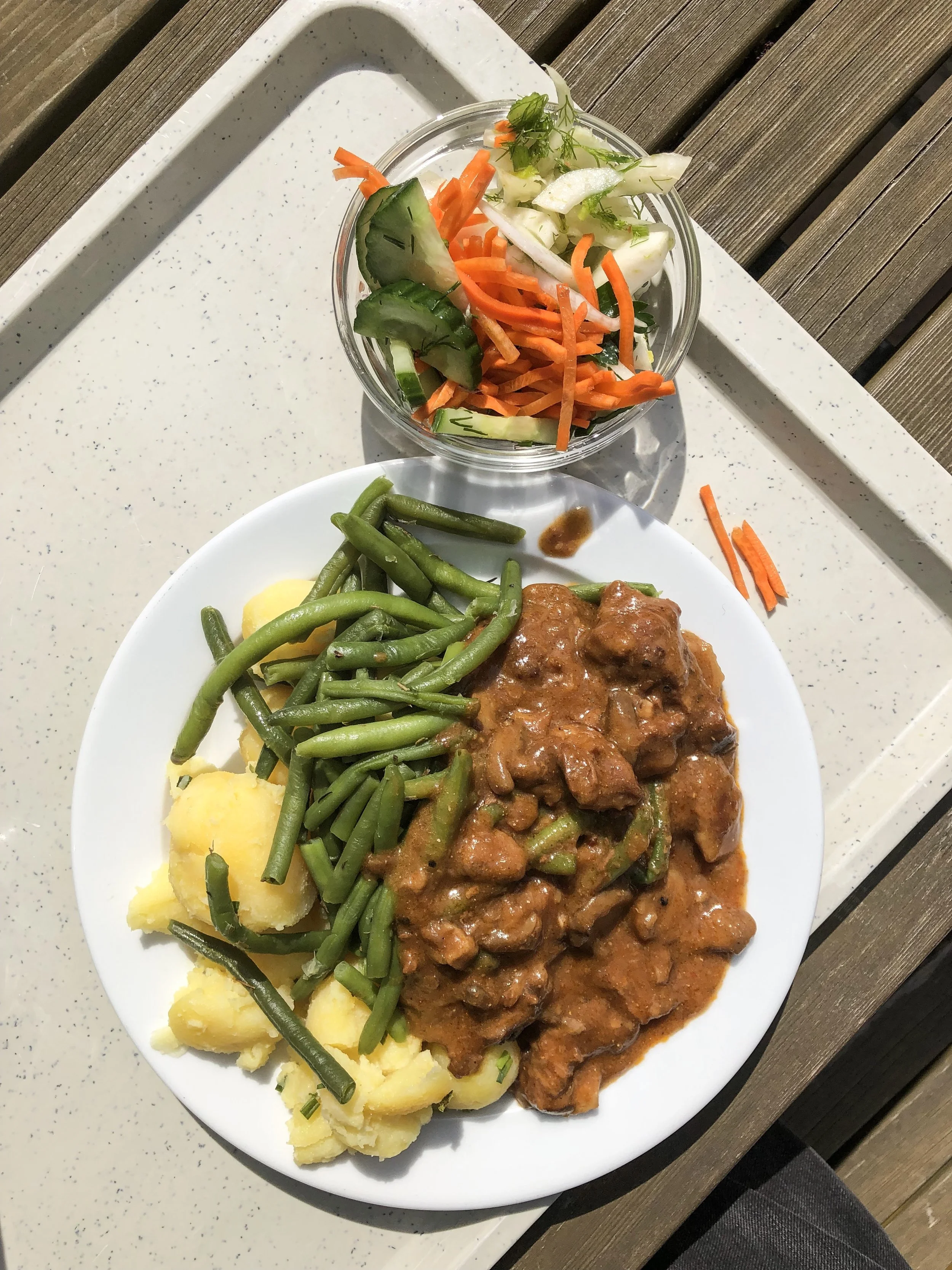 Aufgetaut, verkocht, wässrig und nicht abgeschmeckt, so sieht leider die Realität vieler Mensen aus. Immerhin der Salat wird in Weißensee noch vor Ort zubereitet und aus echten Lebensmitteln geschnitten.